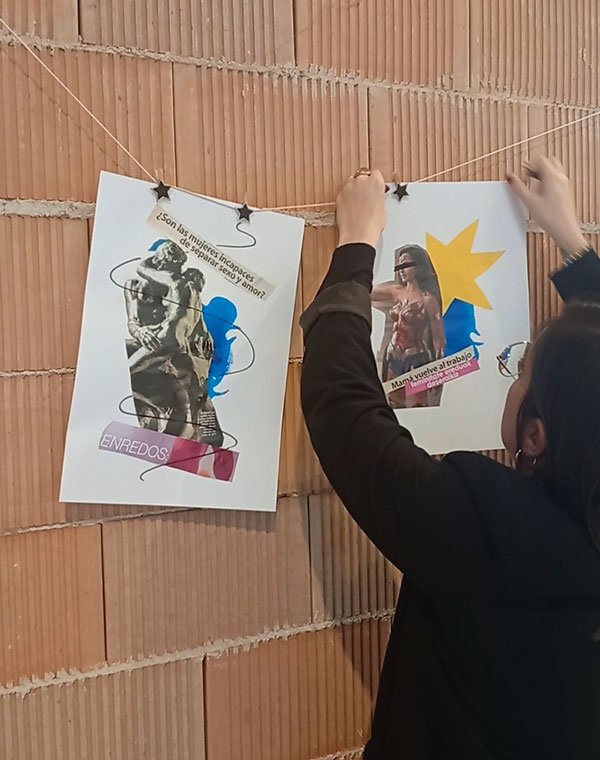He dinamizado talleres de collage creativo como herramienta de expresión colectiva, especialmente en contextos vinculados a la reflexión sobre la violencia de género y la construcción de relatos compartidos.